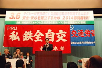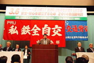 ハイタクフォーラム(全自交労連・交通労連ハイタク部会・私鉄総連ハイタク協議会・代表・伊藤実)は3月6日、東京都千代田区の星陵会館で2014総決起集会を行いました。