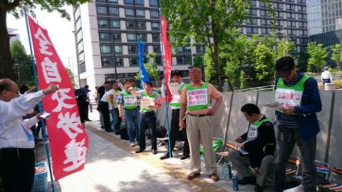 当日は全自交本部と東京地連の仲間12名が座り込みを続け、民主党や社民党の議員が代わるがわる行う決意表明に聞き入っていました。