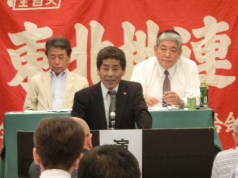 新役員には、鈴木和彦執行委員長(秋田地連)、森茂副執行委員長(岩手地本)、林幹雄書記長(福島地本)、江良實執行委員、遠藤栄二執行委員、嶺岸明広執行委員(宮城地本)、中里正志会計監査(福島地本)、大塚行夫会計監査(山形地本)が選出されました。