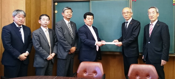 交運労協ハイタク部会(伊藤実部会長)は2月18日、国家戦略特区指定となった兵庫県・養父市を訪れ、市長、市議会議長にライドシェア導入反対の要請書を手渡しました。