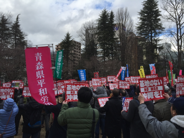 また、「こどもたちのいのちを守るママパパの会・東北」の吉田美智子代表が戦争反対と基地建設反対の想いを参加者に語りました。その後、錦町公園から仙台駅前までデモ行進し、道行く市民に基地建設反対を訴えました。
