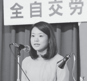 まず最初に全国の仲間からの支援に感謝します。江良書記長から「原告団を結成してくれ」という話がありまして、深く考えずに返事をしました。そして訴状を提出し、地元で記者会見。そして労連本部で全国向けの記者会見をする過程で、愛媛地本からみかんを頂きました。この瞬間に初めて強く分かったのは、本当にこの裁判というのは全国的に注目されているんだということでした。第1回口頭弁論には北海道と東北の仲間が参加。地元青森でも連合、交通運輸関係の組合参加してくれ、大体40名ぐらい集まりました。本当に皆さんの力をお借りして何としても勝利するために全力投球で闘っていきたいと思っています。