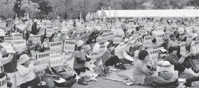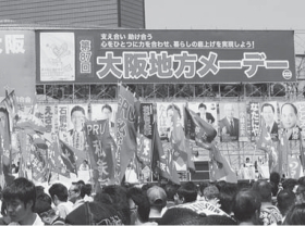 大阪地方メーデーは5月1日、大阪城公園太陽の広場に4万人が結集する中で開かれました。