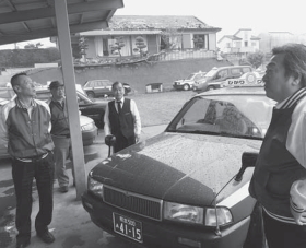 益城町の光洋タクシーを訪ねる全自交の仲間