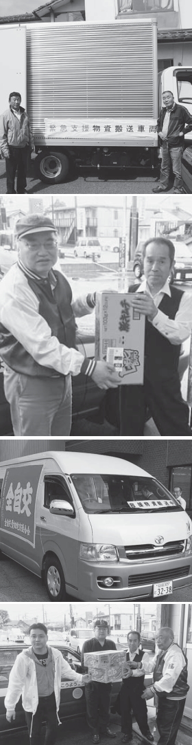また、4月19日には関西地連が兵庫地連の北坂委員長、大阪地連の加藤委員長、京都地連の蒲生委員長ら役員と組合員の5名で2トントラックと街宣車に1トンを超える水や食料等の救援物資を詰め込み、2台に分乗して熊本に向けて出発。