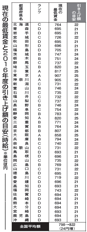中央最低賃金審議会は7月28日、2016年度の地域別最低賃金引き上げの目安を審議し、全国平均で時給換算24円を引き上げるよう厚生労働大臣に答申しました。