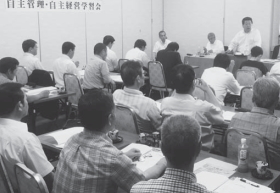 全自交秋田地連が幹事団体となり、2016東日本自主管理・自主経営学習交流会を7月30日、秋田県三種町森岳温泉・ホテル森山館で開きました。青森地連・岩手地本・秋田地連・山形地本・新潟地連の5地連・地本から、ユニオン交通黒石タクシー、ユニオン交通大館タクシー、新花矢タクシー、湖東タクシー、秋田港交通、ユニオン交通秋南タクシー、観光タクシー、新発田観光タクシー、しあわせ交通の7社・9事業所から自主経営を直接担う仲間が参加するとともに、全自交労連から伊藤実中央執行委員長と高橋学書記次長、ユニオン交通と秋田港交通の代表取締役の谷地田恒夫社長が来賓として出席し、総勢30名が参加しました。