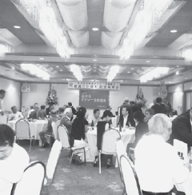 来賓挨拶では全自交本部松永書記長をはじめ連合、県平和センター代表らが祝辞を述べ、長崎地区労議長の乾杯発声で懇親会に入りました。全自交九州地連の仲間や連合・地域共闘の仲間の皆さん、県平和運動センター、長崎地区労、県タクOB会、そして長崎ハイタク経営者協議会等多くの仲間と諸先輩54名がお祝いに駆けつけました。歴史を引き継ぎ、闘い続ける長崎県タクの団結を誓い合い滞り無く祝賀会は終了しました。
