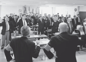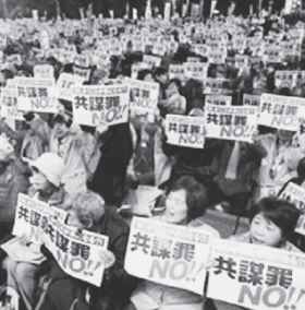 開会あいさつで海渡雄一弁護士は「今こそ歴史に学び日本を戦争する国にしないために現代の治安維持法、共謀罪法制定の野望をくじこう」と参加者に訴えました。集会では社民、民進、共産、自由、沖縄の風が登壇し、共謀罪の危険性を訴え、廃案に向けた闘いに全力をあげることを呼びかけました。「共謀罪」が成立すれば「メールやラインでも合意は成立する」としており、とんでもない監視社会を招くことは必至です。労働組合として絶対に廃案に追い込まなければなりません。
