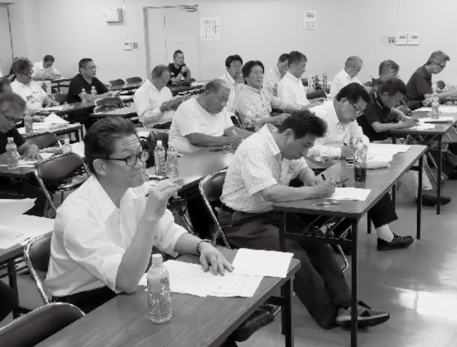 大濱信泉記念館で行われた労使の意見交換会で川鍋会長は「進化するタクシー・闘う全タク連」として頑張っていくと述べ、闘う対象の柱に白タクを上げました。共同交通の喜屋武氏は、沖縄本島でマスコミが取り上げたことをきっかけに、ジャスタビによる観光白タクの取り締まりで逮捕者が出たことを報告。また、八重山交通の平良氏は、石垣島に居住する「台湾の親戚・友人がバイト感覚でかなり前から白タクをはじめ、宮古島や沖縄本島にも広がった」「我々が長年働きかけて八重山署も動き出したが手口が巧妙になっている」と現状を報告しました。