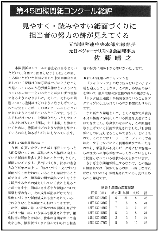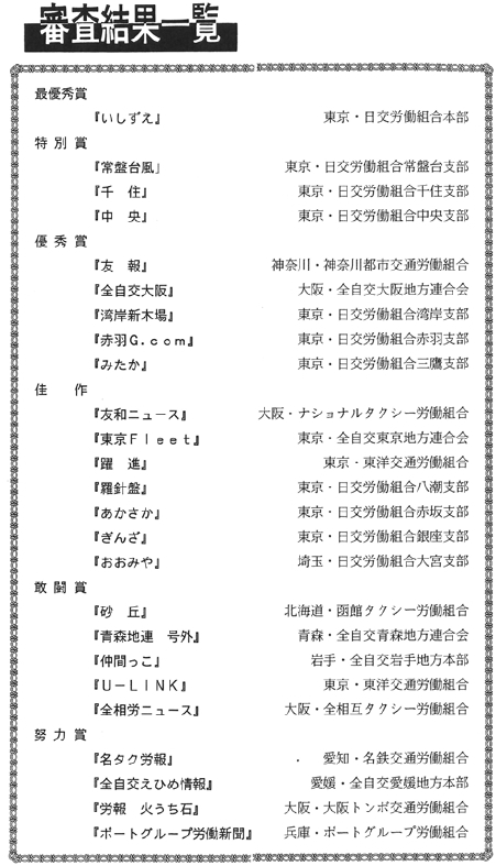 特別賞には「常盤台風」「千住」「中央」の各日交労支部機関紙が入賞しています。