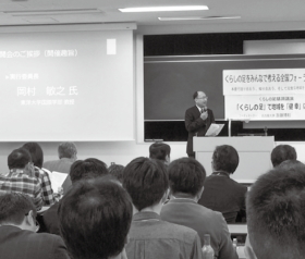 2日目の基調講演に先立ち挨拶した東洋大学の岡村敏之教授は「移動するだけでなく生活の質を上げ健康を維持する観点で公共交通を考えたい」と参加者に呼びかけました。その後、筑波大学の久野譜也教授が「自然と健幸になれるまちづくりにおける公共交通の重要性」と題して講演し「日本では高齢化が加速度的に進行し、高齢者の健康寿命を延ばすことは重要な課題だ」と指摘。「生活習慣病の予防は医療費を抑制する。健康に無関心な層も無関心なまま健康にてしまう政策が、歩いて暮らせまちづくりだ」と参加者に提起し、コンパクトで公共交通にサポートされ、歩いて暮らせるまちづくりの重要性を訴えました。