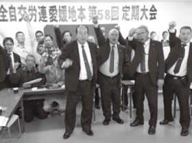 全自交愛媛地本は11月1日、愛媛地本会議室で第58回定期大会を開き、白タク合法化阻止し、公共交通労働者として誇りを持てる労働条件の確立を柱とする新年度運動方針を決定しました。