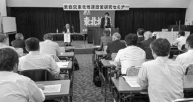 翌5日は「政策セミナー」を開催し、全自交労連の顧問で首都大学東京の戸崎肇特任教授が公共交通をテーマに講演しました(=写真)。