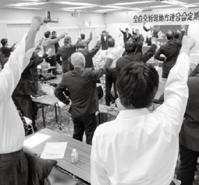 集会の最後に、経済産業省の危険な動きに対する対応や意見書採択の拡大を出席議員に要請して集会を成功裏に終了しました。