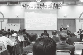 「交通の安全と労働を考える市民会議」は11月13日、広島市・ワークピア広島で「ライドシェア」問題を考える広島集会を開き、中国地方から約100人が参加。全自交労連と全自交広島地本からも積極的に参加しました。