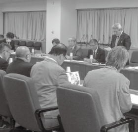第97回中央委員会には、役員30名中27名、中央委員53名中41名が出席(委任状12)し、傍聴者を含め総勢110名が参加しました。