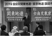 札幌市で新年旗開きを開催し、総勢100名が参加。昨年、北海道を襲った胆振東部地震からの復興と推薦候補者の必勝を誓い合い、参議院北海道選挙区予定候補者の「勝部けんじ」氏(=写真)、全国比例の「岸まきこ」氏が決意表明。国会議員7名と統一地方選挙(札幌圏)の全自交推薦予定候補者9名が決意を述べました。