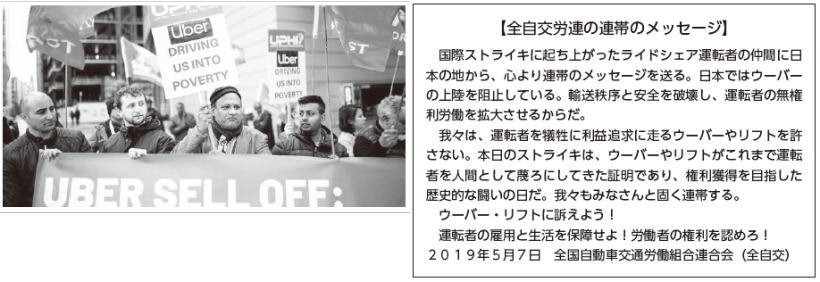 運転手らは、雇用の保障、生活に必要な賃金保障、運賃の手数料の上限の設定を要求。