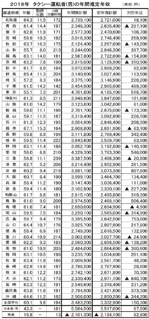 タクシー運転者の年収改善は東京等の都市部に負うところが大きく、地域間の格差は最も高い東京都で470万円であるのに対し、最も低い秋田県で212万円となり、2倍以上の格差となっています。