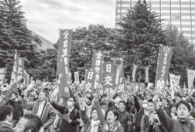 全自交東京地連から250人が参加しこぶしを突き上げる