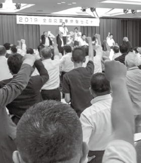 7月21日投開票で行われた参議院議員選挙では、与党が改選議席の過半数を確保したものの、自民党は議席を減らし参議院での改憲勢力が3分の2(改憲発議に必要な数)を割り込む状況を作り出しました。全自交が推薦した比例区の3名が当選を果たすとともに、選挙区でも多くの推薦候補者が健闘しました。安倍政権の7年余にわたる大企業・富裕層優遇の経済政策により、労働者の実質賃金は低下し、若者を自殺に追いやる格差社会と「足りない年金」の問題等の将来不安を高めてきました。また、強権的な国会運営を続け、「戦争のできる国づくり」に向けた戦後史を画する悪法を次々成立させ、沖縄新基地建設やミサイル基地建設を住民無視で進めています。さらに、10月から消費税率10%を実施することで、低所得者に負担を強い、タクシー産業をはじめ疲弊を深める中小零細企業、個人事業主と地方経済に大きなダメージを与えることは確実であり、安倍政権打倒の大きなうねりを作り出していかなければなりません。