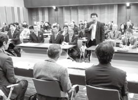 また、新経済連盟からのライドシェアの提案と国会における議論の状況等について述べ、最後に、「ピンチとチャンス」「競争と協創」「普遍と多様」の重要性を強調し、環境の激変に対応し、利用者と共に創る安全な輸送機関としてのタクシーの将来像を参加者に伝えました。