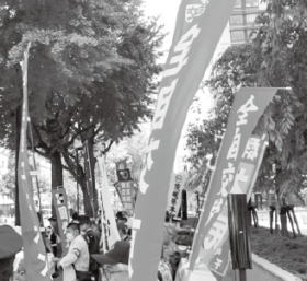 ①同じ地域で働く未組織労働者との接点を拡大するとともに、組織拡大を目的とした街頭宣伝を果敢に展開し、全自交加盟組合の労働条件や交通政策を訴えながら、地域の組織拡大をめざします。