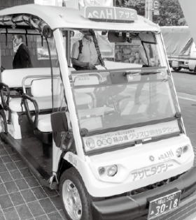 電動ゴルフカートを一部改良し、タクシーの小型車として運行しており、狭い道が多い港町を軽快に疾走しています。最高速度は時速20kmに設定されており、地域に住む高齢者の通院・買物の足として利用されているとともに、観光名所の多い鞆の浦を訪れる観光客にも人気です。