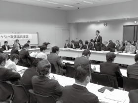 立憲民主党や国民民主党などの国会議員で構成するタクシー政策議員連盟(会長・増子輝彦参議院議員)は9月24日、衆議院第2議員会館で緊急臨時総会を開き、全国48運賃ブロックで10月1日から予定されていた運賃改定が継続審査となり、消費税増税分の転嫁分だけが認可された問題で、「物価問題に関する関係閣僚会議」における運賃改定に関するヒヤリングと意見交換を行いました。