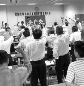 そして、昨年の神戸大会から今年東京で大会を開催する一つの要素であった盛岡大会で分裂したKPUとの統合問題ですが、3年前の3月に「組織統合に向けた事務局会議」が立ち上げられ、一昨年の7月に共同宣言に調印し、昨年8月に「統合協議の中間報告」もまとめられましたが、今大会での統合には至りませんでした。関東・東京地連としては、一日も早い統合を願い、再び東京で大会を開催するときには、必ずや大きな組織拡大を実現したいと思います。