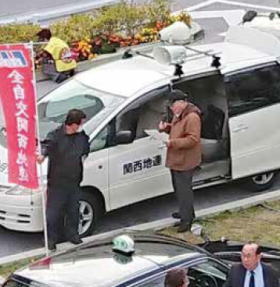 宣伝カーで全自交加盟を訴える仲間