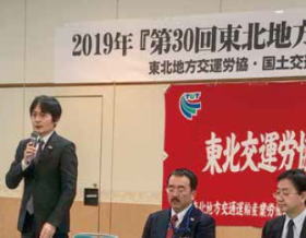 東北交運労協は12月13日、ハーネル仙台で第30回運輸行政懇談会を開き、交運労協からは加盟産別・地方組織から32名が出席し、全自交東北地連から5名が出席しました。また、東北運輸局からは吉田局長以下15名が出席し、東北地方の交通や運輸の課題について意見交換しました。