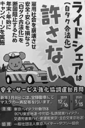 東京ハイタク労働団体は12月16日~1月15日まで、統一行動として毎年恒例の「年末年始安全・サービス強化強調運動」のキャンペーンを行いました。