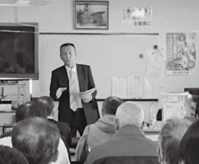 学習会で講演する森田書記次長