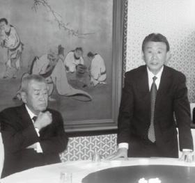挨拶する北坂部会長(右)と吉川会長(左)