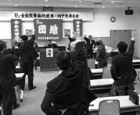 全自交青森地連は2月24日、青森市の労働福祉会館で第36回中央委員会を開き、運賃改定を活かして賃金の抜本改善に向けて闘う春闘方針を確立しました。