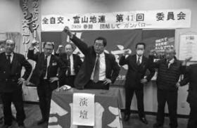 委員会は最後に、組合員のため春闘勝利に向け富山地連全体で一致団結して奮闘することを誓い合い、ガンバローを三唱(写真)して成功裡に終了しました。