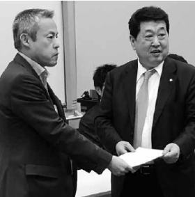 要請書を手交する伊藤実代表(右)