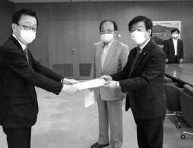 町田副市長に要請書を手交する鈴木委員長(右)