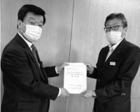 連合岩手盛岡中央地協(高橋浩幸議長)と全自交岩手地本(森茂委員長)は5月19日、滝沢市にタクシーを守る施策を求め主浜市長に要請書を手渡しました(写真)。