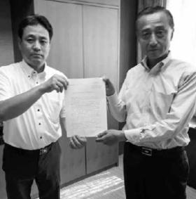 6月5日、本田有執行委員長は事業者の一つ名鉄タクシーホールディングス株式会社の河原英穂社長に要請書を提出しました。