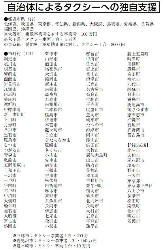売上半減のタクシーに一台・20万円超を支給、社会的弱者に必要不可欠な輸送