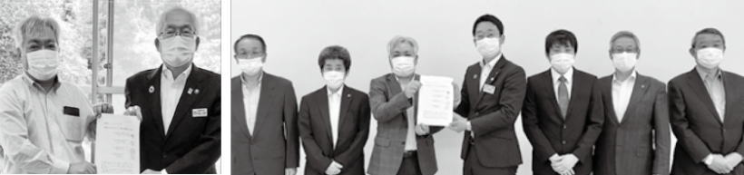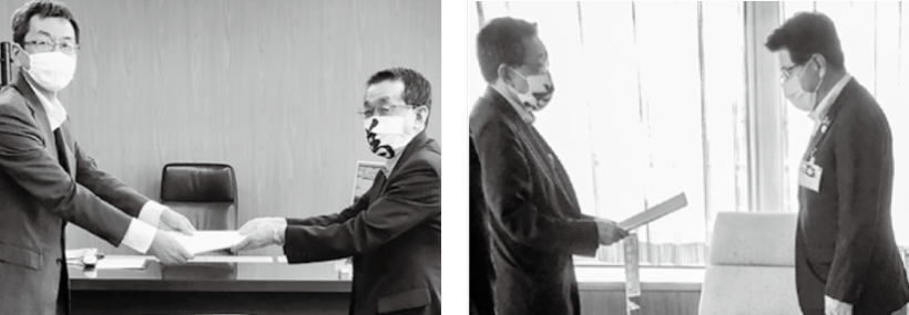 岩手県タクシー協会一関支部(大西支部長・写真左の右)と連合岩手一関地協(伊藤議長)、全自交岩手地本は5月29日、一関市にタクシー事業を守る施策の推進を要請しました。