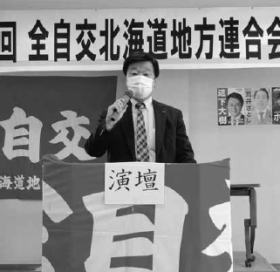 また、「8月28日、安倍前総理は病気を理由に退任を表明し、後継に菅官房長官が就任した。安倍総理の長期政権を支えた官房長官であり、安倍政権の政策・政権運営の継続を訴え、総理に就任したことから『改ざん』『隠ぺい』『忖度』『国民へのウソ』は継続され、大企業・資本家を優遇し、格差の拡大路線を続けることになる。次期衆議院解散総選挙に勝利をめざし連合北海道・全自交が推薦する候補者の当選のため、必ず投票をしていただきたい。」と訴えました。さらに「地域公共交通とタクシーを街から消滅させないため、私たちがコロナの感染者にならず、感染を拡大せず、タクシー車内の換気・消毒、アルコール・石鹸等によるこまめな手洗い等に心掛け、『三密』防止を実行していくこと。私たち全自交は、見えないウイルスとの戦いを勝ち抜き、命と生活を守るため、団結して労働条件改善に取り組む。」と述べました。