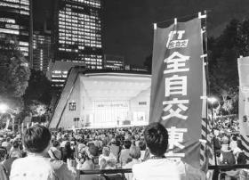 「9・18さよなら原発・首都圏集会」が9月18日、東京都内の日比谷野外音楽堂で開かれ、会場には1300人が集まり、全自交の仲間も積極的に参加しました。