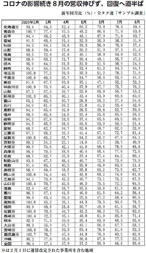 国土交通省は9月、改正タクシー特措法に基づく準特定地域の指定解除の取り扱いについて、今般の新型コロナウイルス感染症の影響により、輸送実績が急減していることから、「指定を解除することによって供給過剰となるおそれがあると認められる場合は、2021年9月30日まで指定の解除を見送る」とする「概要」を示しました。