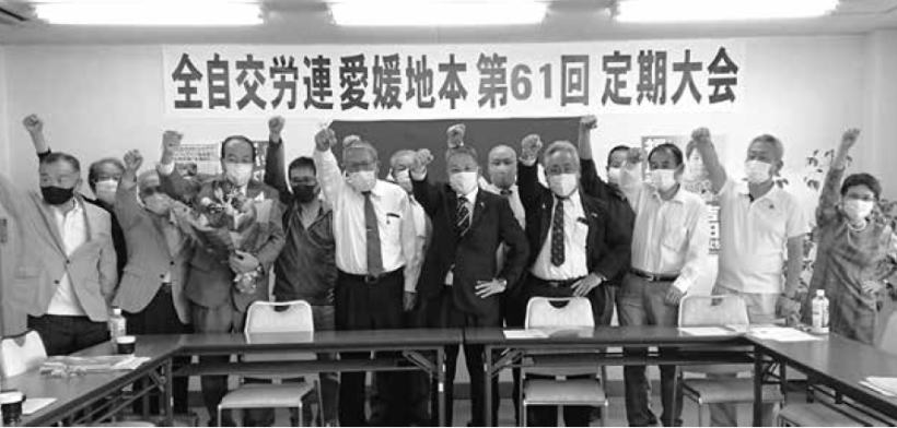 全自交愛媛地方本部は10月1日午後から、愛媛地本の会議室を会場に第61回定期大会を開き、一年間の活動報告と決算報告、新年度の運動方針案と予算案を提案し、何れも全会一致で承認されました。