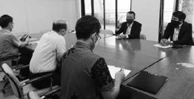 宮古島タクシー労働組合連合の平良委員長は11月13日、全自交本部の森田書記次長と共に宮古島市の企画制作部を訪ね、企画制作部の友利部長ら対応した3名に対し、宮古市の伝統あるタクシー業界で労働組合が結成された経緯を説明し、新型コロナウイルス感染拡大の影響を受けるタクシー業界の厳しい状況を伝え、地域の重要な公共交通を担っているタクシーの政策要求とともに、地域交通会議への参加を求めました。