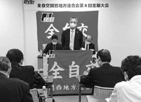 全自交関西地方連合会は10月31日、第8回定期大会を大阪市「エルおおさか」南館で開き、役員、代議員ら約20名が出席しました。大会では、新型コロナ感染で危機的状況を強いられているハイタク労働者の命と雇用と生活を守るための取り組みとライドシェア導入阻止を目指した新年度運動方針案と予算案を決定しました。